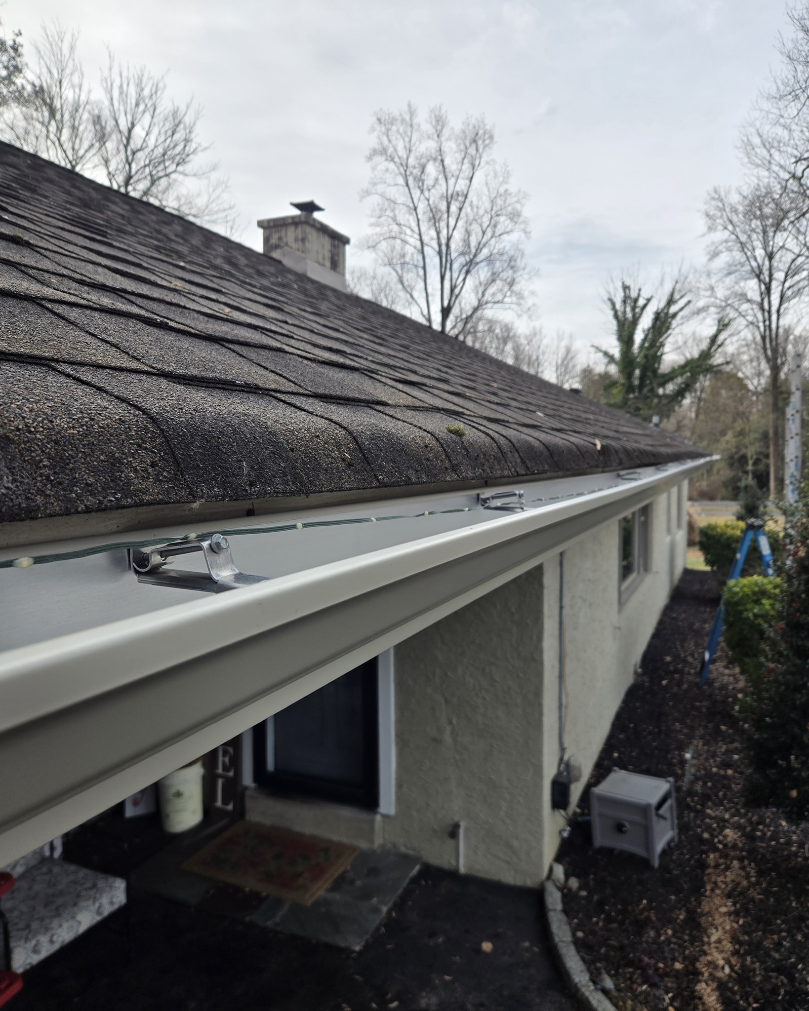 We completed a custom 5K gutter installation along the front eaves of the home to improve drainage and protect the foundation. The project included installing seamless gutters with properly fitted inside and outside corners, securely fastened using color-matched white metal for a clean, cohesive finish.