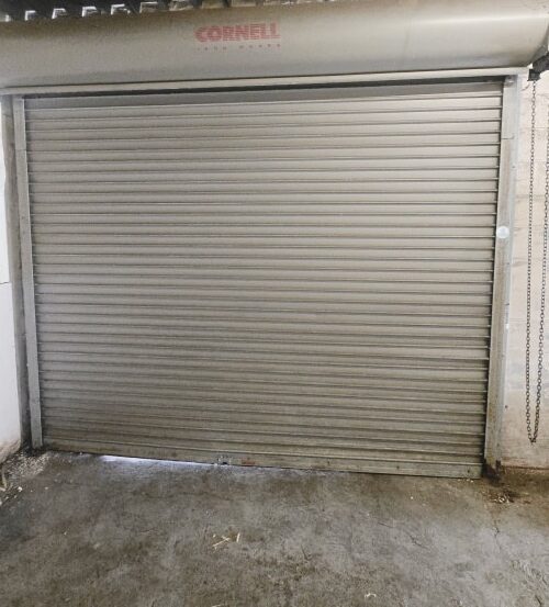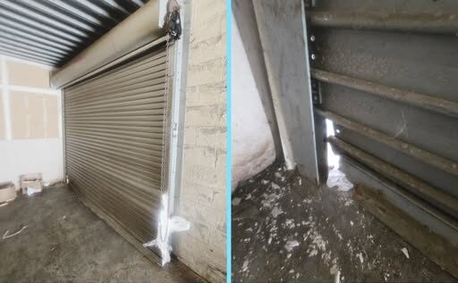 Our team removed the right-hand guide, repaired damaged slats, made a relief cut in the bottom bar, and reinforced it with steel angle and hardware. The guides were carefully spread, realigned, and re-fastened to ensure smooth travel. We then lubricated the endplates and guides and documented the door for future slat replacement.