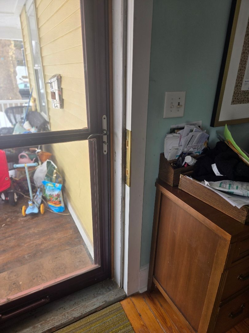 We completed a door frame repair to restore proper fit, strength, and appearance. The project began with a thorough inspection of the door framing to identify areas of wear or damage. The existing strike plate was removed, and new wood was installed along the opening side of the frame to rebuild a solid, secure surface.
