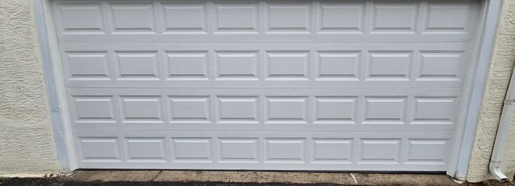 To replace the damaged unit, we installed a Clopay 4050 insulated garage door in white.