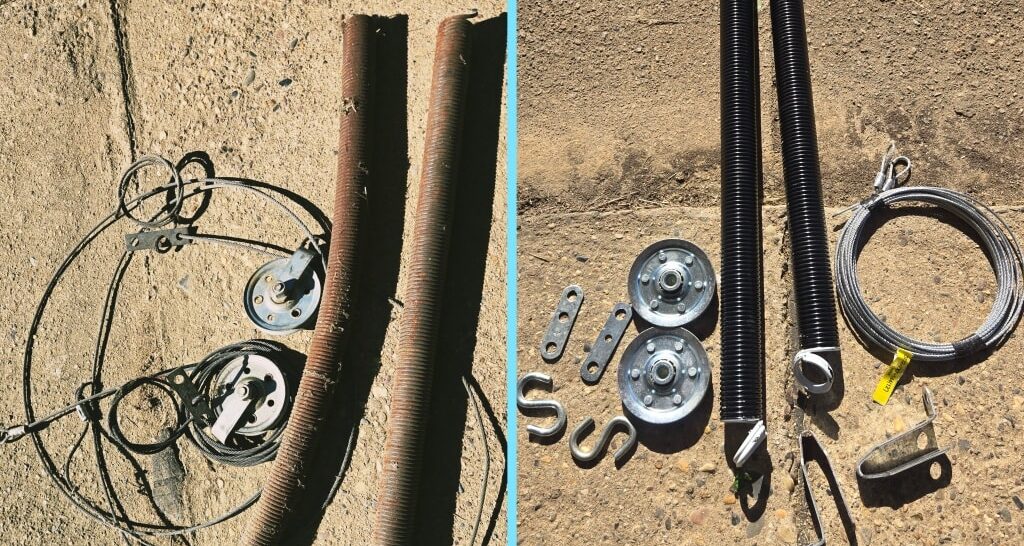 For this garage door service project, we replaced antiquated and damaged extension springs, always installing them in pairs to ensure balanced operation. Along with the springs, we installed new cables, pulleys, and all necessary hardware to restore smooth, safe, and reliable performance.