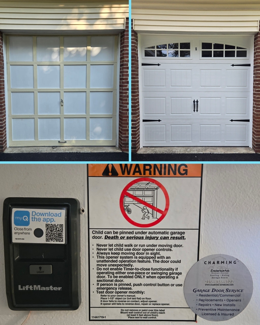 Out with the old, in with the bold! We transformed this garage with a brand-new Clopay Gallery insulated steel door—featuring an 18.4 R-value for top-tier energy efficiency and stylish Arch 1 grille windows for added charm. Paired with a LiftMaster belt drive WiFi opener, this setup delivers smooth, quiet operation and modern convenience, complete with an exterior keypad and emergency release kit. From top panel struts to fresh weatherseals, every detail was upgraded for durability, performance, and curb appeal that lasts.