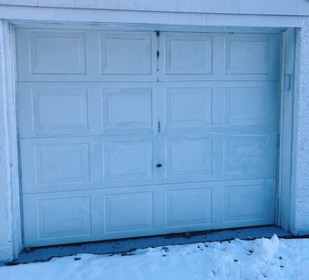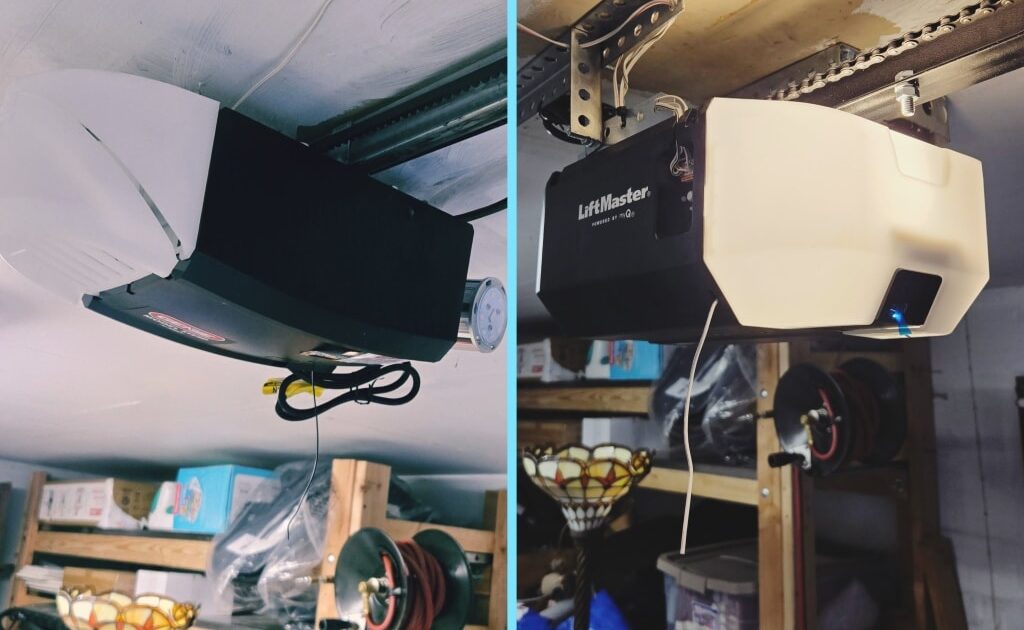 To support the new installation, we added lumber to the header and replaced a damaged Genie opener with a LiftMaster 2220L chain drive Wi-Fi trolley opener, masonry-mounted for a secure setup. Per opener warranty requirements, steel reinforcement was added to the top panel. All old components and debris were removed and properly disposed of, leaving a clean, fully updated system.