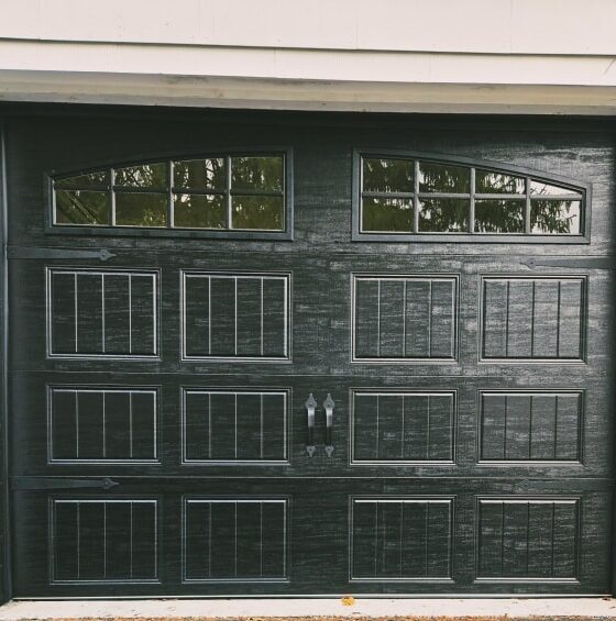 We upgraded an antiquated low-headroom garage door system with a new 9′ x 6’9″ Clopay Gallery GD1SP insulated steel garage door rated at 6.5 R-value. Finished in black, the door features a grille-on-Arch 1 double-strength window panel for a bold look, along with a new black vinyl jamb weatherseal to improve sealing and durability.