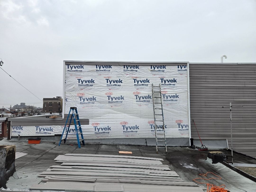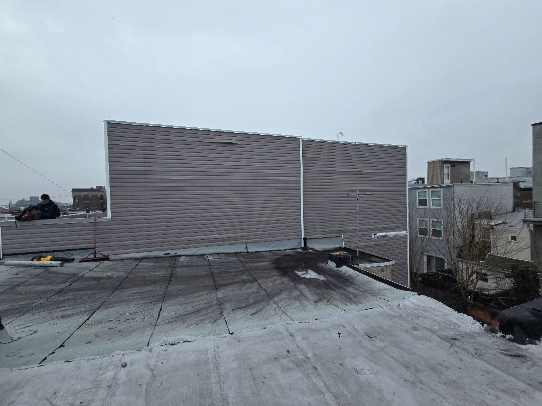 During the repair, we addressed a critical transition area by installing missing flashing where the neighboring roof meets the wall, preventing potential water intrusion. We also installed approximately half a square of new siding where material was missing and added new J-channel where needed to properly secure and finish the edges.
